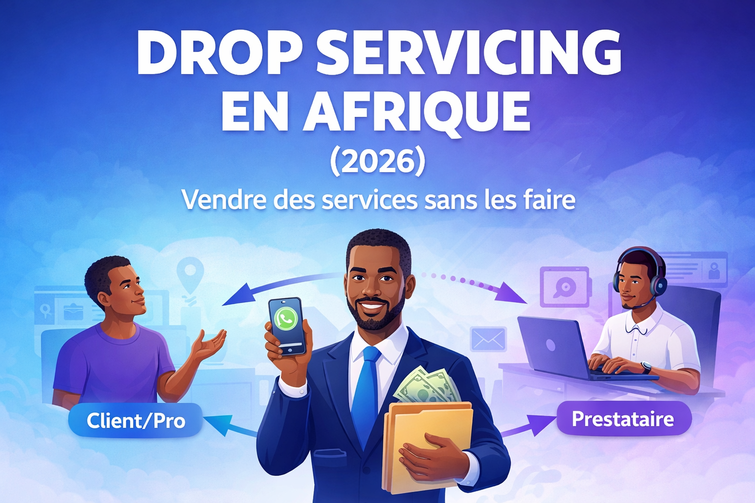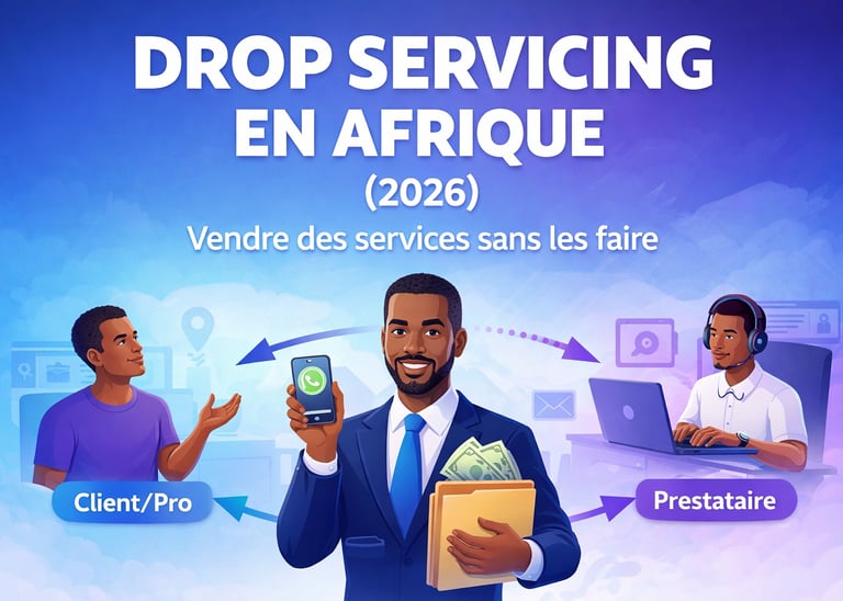 Drop Servicing en Afrique (2026) : apprends à vendre des services sans les faire. Niche, packs, prix, prestataires, prospection WhatsApp/FB, paiements et erreurs à éviter.